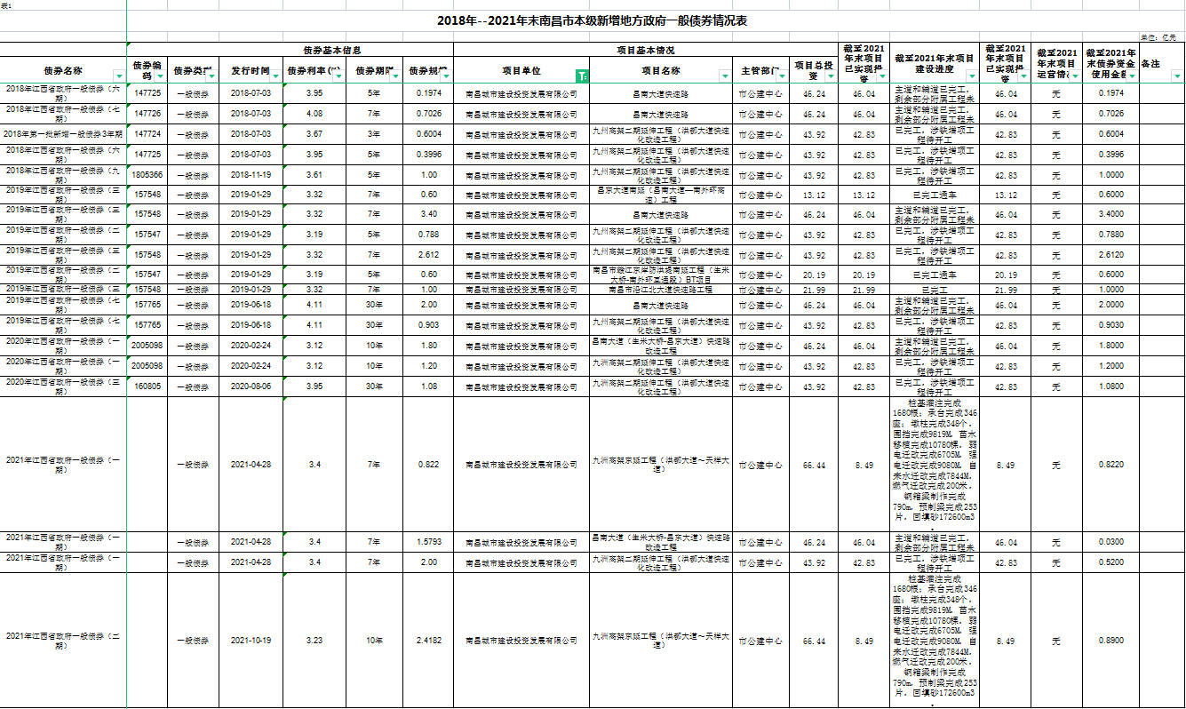 2018年--2021年尾南昌市本级新增地方政府一样平常债券情形表
